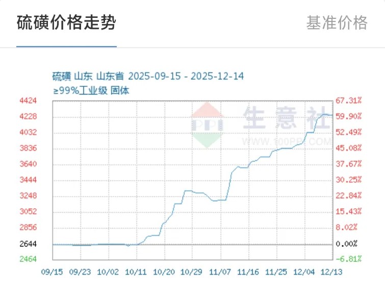 数据说话最直观:截至2025年12月11日,华东地区固体硫磺价格已经突破4000元/吨,对比2023年735元/吨的低点,足足暴涨了446%,就算和2024年同期比,涨幅也高达160%,直接创下近十年的历史纪录。山东地区报价更是冲到了4400元/吨,不少下游企业直呼“成本压力扛不住”。